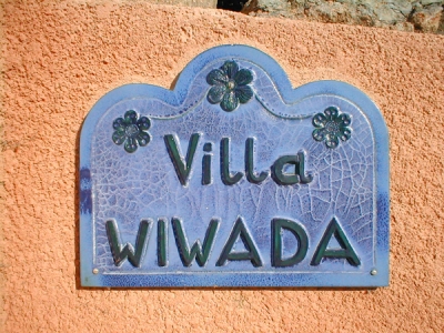 So werden Sie empfangen! Neben dem automatischen Tor das Schild der Villa Wiwada