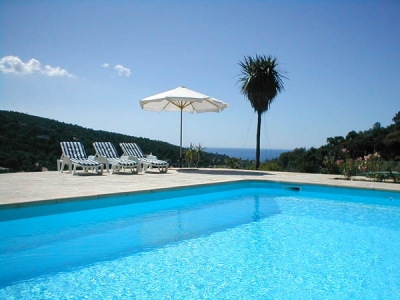 mit Pool, schönen Meerblick und mediterranen Garten.